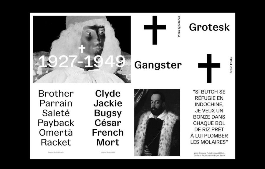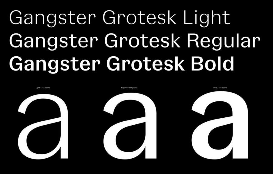 Nodding to its historical roots in the 1920s, Gangster Grotesk is a contemporary typeface that combines a sharp contrast with angled terminal strokes that curve inward ever so slightly. These elements are simple but effective, lending the typeface character while being practically invisible at small sizes.